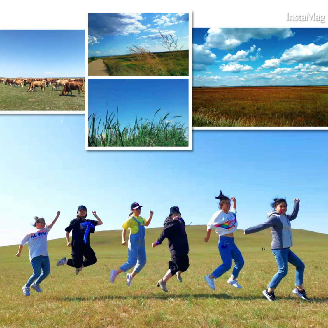 午飯過后,我們便收拾行囊踏上了返程的路。三天的旅程短暫而快樂,我們仍舊依依不舍。返程大巴在草原上疾駛,朦朧中,仿佛與藍天相伴,隨風而行。車窗外草原飛快地向后方旋轉,告別我們而去。再見,美麗遼闊的大草原。